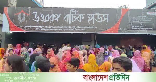 প্রত্যক্ষদর্শী ও পুলিশ সূত্রে জানা যায়, এক হাজার টাকায় চারটি থ্রিপিস বিক্রির ঘোষণা দিয়ে ‘উত্তরবঙ্গ বাটিক হাউস’ ব্যাপক প্রচারণা চালায়। সকাল ৭টা থেকেই নারী ক্রেতারা দোকানের সামনে সারিবদ্ধভাবে অপেক্ষা করতে থাকেন। দুপুর নাগাদ কয়েক হাজার নারী ভিড় জমালে এলাকায় যানজটের সৃষ্টি হয়।