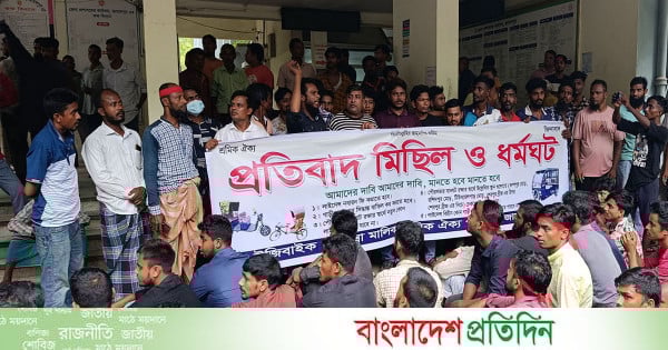 রবিবার সকাল ৬টা থেকে ইজিবাইক ও রিকশা মালিক-শ্রমিক ঐক্য পরিষদের ডাকে পূর্বঘোষিত ধর্মঘট শুরু হয়। দুপুরে গেইটপাড়া এলাকা থেকে প্রতিবাদ মিছিল বের করে চালকরা জেলা প্রশাসকের কার্যালয়ের সামনে অবস্থান নেন। পরে জেলা প্রশাসক হাছিনা বেগমের সভাপতিত্বে এক সভা অনুষ্ঠিত হয়।