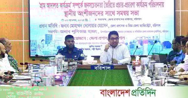 বাংলাদেশ গ্রাম আদালত সক্রিয়করণ (৩য় পর্যায়) প্রকল্পের আয়োজনে অনুষ্ঠিত সভায় সভাপতিত্ব করেন বরিশালের অতিরিক্ত জেলা প্রশাসক লুসিকান্ত হাজং।