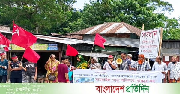 প্রতিদিন হাজার হাজার যানবাহন এই সেতুর ওপর দিয়ে চলাচল করে। বালুর বস্তায় ভর করে দাঁড়িয়ে থাকা এমন একটি সেতু মানুষের জীবনের জন্য মারাত্মক ঝুঁকিপূর্ণ। বক্তারা দ্রুত ব্রিজটি সংস্কার ও তার আগে ডাইভারশন সড়ক নির্মাণের দাবি জানান।