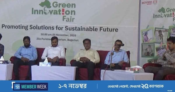 বাগেরহাটে পরিবেশবান্ধব পণ্য উৎপাদনকারী উদ্যোক্তাদের নিয়ে ‌‘গ্রীন ইনোভেশন ফেয়ার’ অনুষ্ঠিত হয়েছে। বুধবার বেসরকারি উন্নয়ন সংস্থার সহযোগিতা ও বাধন মানব উন্নয়ন সংস্থার আয়োজনে বাগেরহাট জেলা পরিষদ অডিটোরিয়ামে দিনব্যাপী এই মেলার আয়োজন করা হয়।