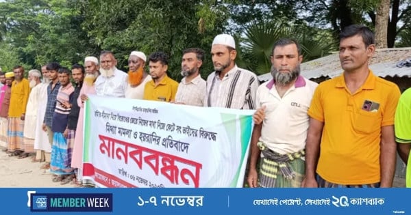 বৃহস্পতিবার বিকেল সাড়ে ৫টার দিকে উপজেলার পঁচাকোড়ালিয়া ইউনিয়নের জয়ালভাঙ্গা গ্রামে ভুক্তভোগী পরিবার ও এলাকাবাসীর ব্যানারে মানববন্ধন হয়। এতে প্রায় তিন শতাধিক নারী-পুরুষ অংশ নেন।