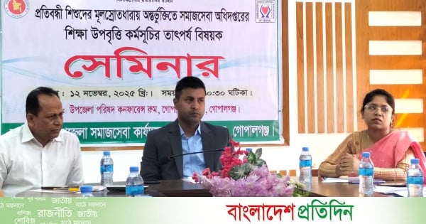 গোপালগঞ্জে প্রতিবন্ধী শিশুদের মূলস্রোতধারায় অন্তর্ভুক্তি এবং শিক্ষার সুযোগ বাড়াতে সমাজসেবা অধিদপ্তরের শিক্ষা উপবৃত্তি কর্মসূচির তাৎপর্য নিয়ে এক সেমিনার অনুষ্ঠিত হয়েছে।