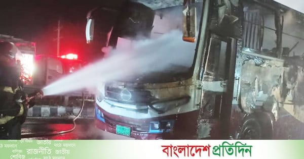 মধ্যরাতে ঢাকা-টাঙ্গাইল মহাসড়কে যাত্রীবাহী বাসে আগুন