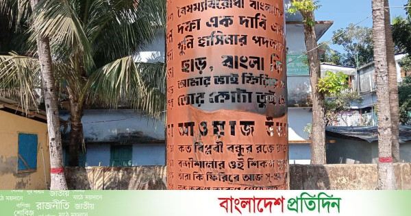 পিরোজপুরে জুলাই স্মৃতিস্তম্ভে আগুন