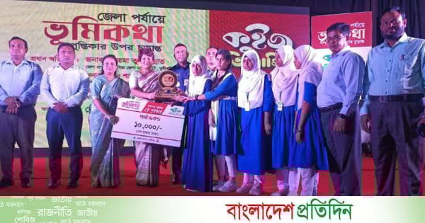 মুন্সীগঞ্জে ‘ভূমিকথা’ নামে পুস্তিকাভিত্তিক জেলা পর্যায়ের চূড়ান্ত কুইজ প্রতিযোগিতা অনুষ্ঠিত হয়েছে। প্রতিযোগিতায় একক বিভাগে চ্যাম্পিয়ন হয়েছেন টঙ্গীবাড়ী উপজেলার আউটশাহী রাধানাথ উচ্চ বিদ্যালয়ের নবম শ্রেণির শিক্ষার্থী জুবাইদা খাতুন অর্পা। দলগত বিভাগে চ্যাম্পিয়ন হয়েছে লৌহজং উপজেলার হলদিয়া সরকারি বহুমুখী উচ্চ বিদ্যালয় এবং রানার্সআপ হয়েছে টঙ্গীবাড়ীর বালিগাঁও উচ্চ বিদ্যালয়।