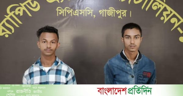 গ্রেফতার হওয়া ব্যক্তিরা হলেন কুড়িগ্রাম জেলার উলিপুর থানার নন্দু নেপড়া গ্রামের আব্দুল হাকিমের ছেলে আইনুল ইসলাম ওরফে বুলেট (২২) ও বাগেরহাট জেলার গজারিয়া গ্রামের আলতাফ হোসেনের ছেলে রাজীব (২০)।