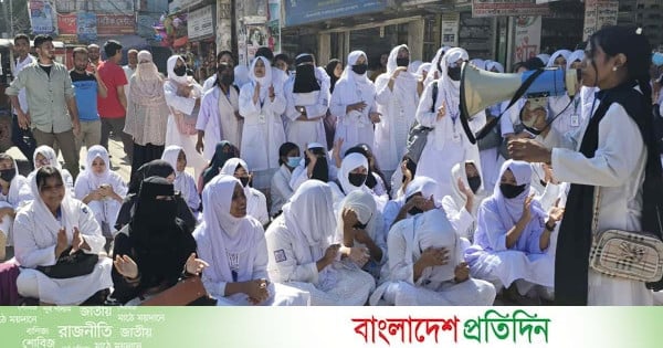 রবিবার বেলা সাড়ে ১১টা থেকে ১২টা পর্যন্ত তারা কলেজের সামনের হাসপাতাল রোড অবরোধ করে আগুন জ্বালিয়ে প্রতিবাদ জানায়।