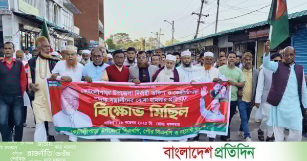 গোপালগঞ্জের কোটালীপাড়া উপজেলা পরিষদ ও থানায় ককটেল হামলার প্রতিবাদে বিক্ষোভ মিছিল করেছে উপজেলা বিএনপি ও সহযোগী সংগঠনের নেতৃবৃন্দ।