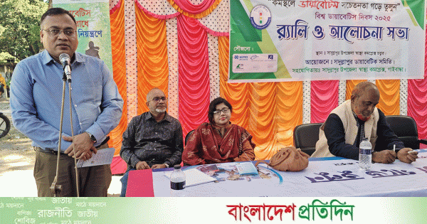 ১৪ নভেম্বর বিশ্ব ডায়াবেটিস দিবস উপলক্ষে গাইবান্ধার সাদুল্লাপুর ডায়াবেটিক সমিতির উদ্যোগে র্যালি ও আলোচনা সভা অনুষ্ঠিত হয়েছে। প্রধান অতিথি ছিলেন উপজেলা স্বাস্থ্য ও পরিবার পরিকল্পনা কর্মকর্তা ডা. শাহিনুল ইসলাম মন্ডল শাহিন।