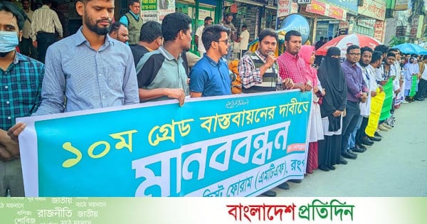 রংপুরে মেডিকেল টেকনোলজিস্ট ও ফার্মাসিস্টদের মানববন্ধন