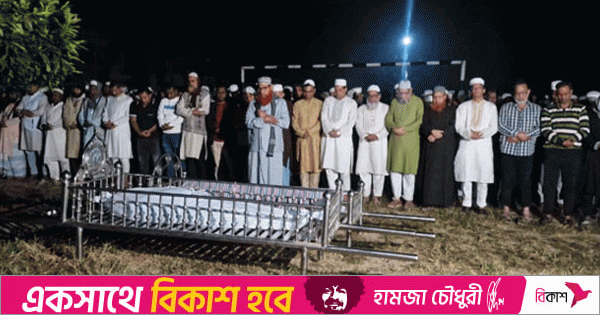 জানাজার আগে রাত ১১টায় নিহতদের লাশ ঢাকা মেডিকেল কলেজ হাসপাতাল থেকে মাদরাসা মাঠে আনা হলে স্বজন, সহকর্মী ও এলাকাবাসী ভিড় করেন। পুরো এলাকায় নেমে আসে শোক।