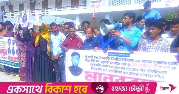 রবিবার (২৩ নভেম্বর) সকাল ১০টায় জেলা প্রশাসক কার্যালয়ের সামনে এ মানববন্ধন অনুষ্ঠিত হয়। ঘণ্টাব্যাপী মানববন্ধনে আসামিদের গ্রেপ্তার ও বিচার দাবি করে বক্তব্য রাখেন নিহত সরোয়ার হাওলাদারের সহধর্মীনি মনসুরা বেগম, বড় ছেলে শাকিব, ছোট ছেলে শিফাত, বোন পারভীন, চাম্পা, ইটবাড়িয়া ইউনিয়ন বিএনপির সভাপতি শাহ আলম গাজী, সাধারণ সম্পাদক জসিম উদ্দিন, নিহতের বড় ভাই বাদী মো. দেলোয়ার হাওলাদার, মুসা মুন্সি, সিদ্দিক হাওলাদার প্রমুখ।