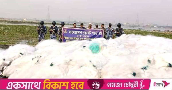 মুন্সীগঞ্জের পঞ্চসার ইউনিয়নের বিনোদপুর ডিংগাভাঙ্গা সংলগ্ন এলাকায় কোস্ট গার্ডের অভিযানে প্রায় ৩৯ কোটি ১৫ লাখ টাকা মূল্যের বিপুল পরিমাণ নিষিদ্ধ কারেন্ট জাল ও সুতার রিল জব্দ করা হয়েছে।