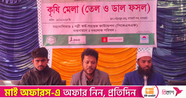 বাগেরহাটে তেল ও ডাল ফসলের আবাদ বৃদ্ধি, প্রক্রিয়াজাতকরণ ও বাজারজাতকরণের কৌশল বিষয়ে একটি কৃষি মেলা অনুষ্ঠিত হয়েছে।