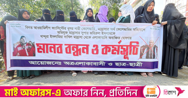 মানববন্ধনে শিক্ষার্থীরা অভিযোগ করে বলেন, নির্বাচনী পরীক্ষায় পাস করিয়ে দেওয়ার কথা বলে মেয়ে শিক্ষার্থীদের ফাঁদে ফেলে অশালীন কাজ করতে বাধ্য করে মাদ্রাসার সুপার জহিরুল ইসলাম। এমনকি যারা এসব ফাঁদ এড়িয়ে গেছে তাদের বার বার পরীক্ষায় অকৃতকার্য করানো হয়েছে। শিক্ষার্থীরা অভিযোগ করে বলেন, নির্বাচনী পরীক্ষায় আমাদের উত্তীর্ণ করে বেশি নম্বর দেওয়ার কথা বলে অশালীন প্রস্তাব দিয়েছেন তিনি। হুজুর আমাদের শরীরে হাত দেন। নির্বাচনী পরীক্ষা না দিয়েই আমাদের দাখিল পরীক্ষা দেওয়ার ব্যবস্থা করে দিবেন বলে কুপ্রস্তাব দিত। বিনিময়ে হুজুরের সঙ্গে বিভিন্ন জায়গায় যেতে হবে বলে জানিয়েছেন।