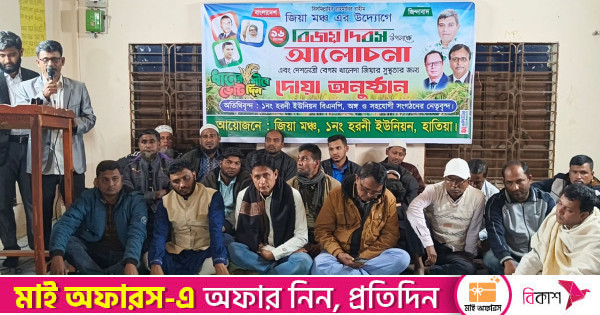 নোয়াখালীর দ্বীপ উপজেলা হাতিয়ায় সাবেক প্রধানমন্ত্রী ও বিএনপি চেয়ারপার্সন বেগম খালেদা জিয়ার দ্রুত সুস্থতা, দীর্ঘায়ু ও মঙ্গল কামনায় জিয়া মঞ্চের উদ্যোগে আলোচনা সভা ও দোয়া মাহফিল অনুষ্ঠিত হয়েছে।