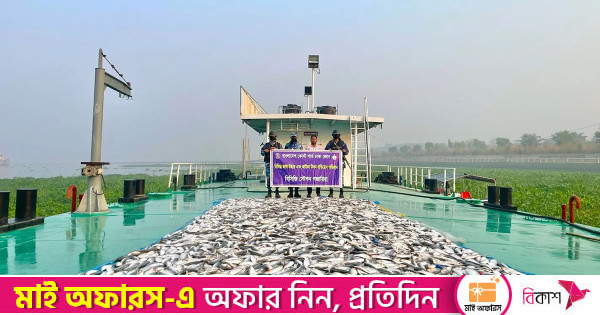 মুন্সীগঞ্জের গজারিয়া উপজেলার ভবেরচর বাউশিয়া এলাকা থেকে প্রায় ৪৩ লক্ষ ৫ হাজার টাকা মূল্যের ৬ হাজার ১৫০ কেজি জাটকা জব্দ করা হয়। গোপন সংবাদের ভিত্তিতে বুধবার (১৭ ডিসেম্বর) সকাল ৬ টায় কোস্ট গার্ড স্টেশন গজারিয়া কর্তৃক একটি বিশেষ অভিযান পরিচালনা করা হয়।
