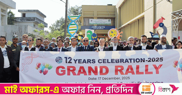 এসময় তিনি বলেন, বায়োটেকনোলজি এবং জেনেটিক ইঞ্জিনিয়ারিং অনুষদের এক যুগের যাত্রা শিক্ষাগত উৎকর্ষ, গবেষণার অগ্রগতি এবং প্রাতিষ্ঠানিক উন্নয়নের একটি গৌরবময় উদাহরণ। প্রতিষ্ঠা কাল থেকে এই অনুষদ আধুনিক বিজ্ঞানভিত্তিক শিক্ষা ও গবেষণায় গুরুত্বপূর্ণ অবদান রেখে আসছে। জেনেটিক ইঞ্জিনিয়ারিং এর কল্যাণে অনেক বিষয় আজ সহজ প্রাপ্য হয়েছে। ব্যাকটেরিয়া এবং ভাইরাসের ভেরিয়েবল এবং কনজার্ভ রিজিয়নে কি ধরনের মিউটেশন হচ্ছে জেনেটিং ইঞ্জিনিয়ারিং তার দ্বার খুলে দিয়েছে।