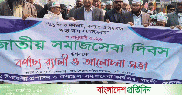 ‘প্রযুক্তি ও মমতায়, কল্যাণ ও সমতায়’ -এই প্রতিপাদ্যকে সামনে রেখে মেহেরপুরের গাংনীতে জাতীয় সমাজসেবা দিবস পালিত হয়েছে।