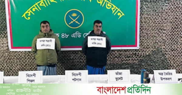 চট্টগ্রামের বোয়ালখালীতে নিজ ঘরে দেশীয় অস্ত্র তৈরির সরঞ্জামসহ দুই সহোদরকে গ্রেপ্তার করেছে সেনাবাহিনী। এ সময় তাদের কাছ থেকে ৪টি বিদেশি শট গান, ২টি বিদেশি পিস্তল, ১৩ রাউন্ড এমোনিশন ও বিপুল পরিমাণ অস্ত্র তৈরির উপকরণ উদ্ধার করা হয়।