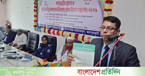 “দেশের চাবি আপনার হাতে, পরিবর্তনের জন্য ‘হ্যাঁ’ ভোট দিন” এই স্লোগানকে সামনে রেখে গণভোটের প্রচার ও ভোটার উদ্বুদ্ধকরণের লক্ষ্যে জয়পুরহাটে জেলা ইমাম সম্মেলন অনুষ্ঠিত হয়েছে।