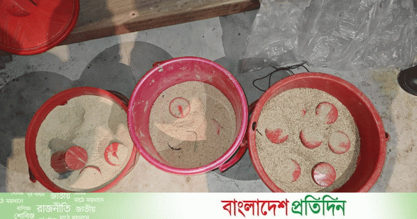 শনিবার রাত ৯টার দিকে ঢালীকান্দি মানিক শিকদারের বাড়ি থেকে ককটেলগুলো উদ্ধার করা হয়।