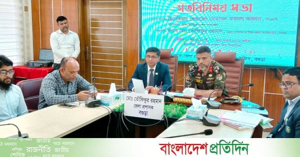 বগুড়া জেলা প্রশাসক মো. তৌফিকুর রহমানের সভাপতিত্বে সভায় আরও বক্তব্য রাখেন অতিরিক্ত জেলা প্রশাসক (সার্বিক) মো. মেজাবাউল করিম, টিসিবি ক্যাম্প অফিস বগুড়ার সহকারী পরিচালক (অফিস প্রধান) সাদ্দাম হোসাইন। সভায় সরকারি কর্মকর্তাসহ জেলার বিভিন্ন এলাকার ডিলাররা উপস্থিত ছিলেন।