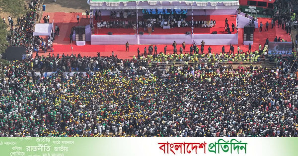 প্রধান অতিথি তারেক রহমান তার বক্তব্য শেষ করতেই ‘দুলাভাই’ ‘দুলাভাই’ ধ্বনিতে মুখরিত হয়ে উঠে আজ সিলেটের আলিয়া মাঠ।