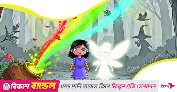 পুষ্পা বলল, বুড়ির আস্তানায়? জাদুকরী একটি হাঁড়িতে চুরি করা সব রং রাখা আছে। হাঁড়ি ভাঙতে পারলে সব রং আবার বনের পাখি, ফুল আর পাতায় ফিরে আসবে।