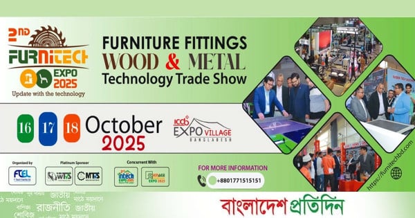 রাজধানীর আন্তর্জাতিক সম্মেলন কেন্দ্র বসুন্ধরার এক্সপো ভিলেজে আগামীকাল বৃহস্পতিবার (১৬ অক্টোবর) থেকে শুরু হচ্ছে তিন দিনব্যাপী ‘ইন্টেরিয়র ও ফার্নিচার টেকনোলজি এক্সপো–২০২৫’ এবং প্রথমবারের মতো ‘সাইনেজ টেকনোলজি এক্সপো–২০২৫’।