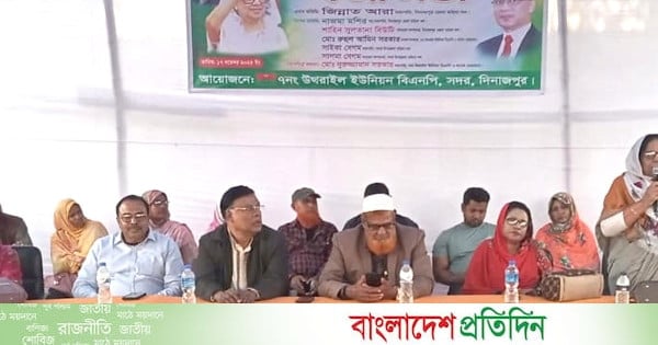 বক্তারা বলেন, সাবেক প্রধানমন্ত্রী দেশনেত্রী বেগম খালেদা জিয়া দিনাজপুর সদর আসনে প্রার্থী হয়েছেন। আমরা ধানের শীষে ভোট দিয়ে তার জন্য দেশের সেরা জয় উপহার দিতে চাই। এ ক্ষেত্রে আপনাদের সমর্থন, দোয়া ও ভোট সবচেয়ে বেশি প্রয়োজন।”