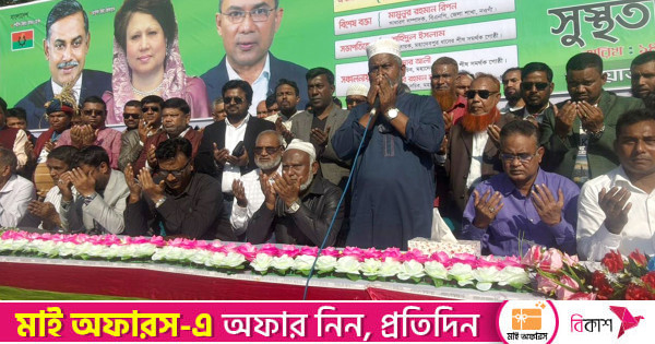 বিএনপির চেয়ারপার্সন ও সাবেক প্রধানমন্ত্রী বেগম খালেদা জিয়ার রোগমুক্তি ও সুস্থতা কামনা করে নওগাঁয় হাজার হাজার মানুষ মোনাজাত করেছে।
