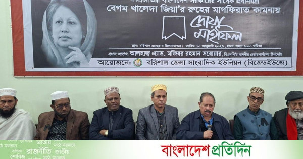 বরিশাল জেলা সাংবাদিক ইউনিয়নের আয়োজনে সাবেক প্রধানমন্ত্রী বেগম খালেদা জিয়ার রুহের মাগফিরাত কামনায় অনুষ্ঠিত দোয়া মাহফিলে প্রধান অতিথির বক্তব্যে তিনি এসব কথা বলেন। শনিবার সন্ধ্যা ৬টায় বরিশাল প্রেসক্লাবের হলরুমে এ দোয়া মাহফিল অনুষ্ঠিত হয়। এতে প্রায় দুই শতাধিক সাংবাদিক ও সাধারণ মানুষ অংশ নেন।