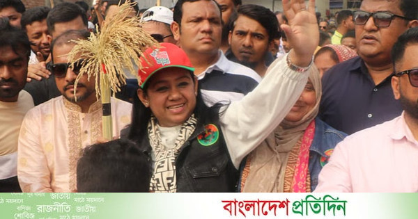 দেশকে গণতন্ত্র ও সুশাসনের ধারায় ফেরাতে ভোটারদের কাছে ধানের শীষে ভোট চান সানজিদা ইসলাম তুলি।