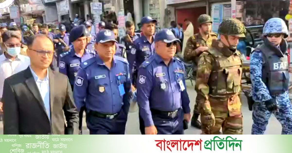 এর অংশ হিসেবে আজ মঙ্গলবার পৌরশহরসহ জেলার বিভিন্ন স্থানে সেনা, নৌ, বিজিবি, র্যাব, পুলিশ ও আনসার বাহিনীসহ জুডিসিয়াল ও নির্বাহী ম্যাজিস্ট্রেটরা টহল দিচ্ছেন।