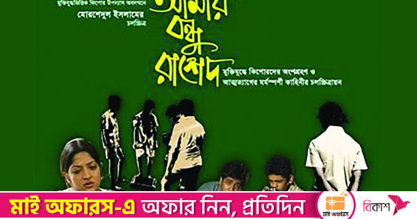 একটি ছোট ছেলের চোখে দেখা ১৯৭১ সালের স্বাধীনতা সংগ্রামের ইতিহাস নিয়ে তৈরি পূর্ণদৈর্ঘ্য চলচ্চিত্র ‘আমার বন্ধু রাশেদ’। মুহম্মদ জাফর ইকবালের গল্প অবলম্বনে পরিচালনা করেছেন মোরশেদুল ইসলাম। অভিনয় করেছেন রাইসুল ইসলাম আসাদ, পীযূষ বন্দ্যোপাধ্যায়, গাজী রাকায়েত, ওয়াহিদা মল্লিক, আরমান পারভেজ মুরাদ, হুমায়রা হিমু, এনামুল হক চৌধুরী, জয়িতা আফনান, রায়হান ইফতেশাম চৌধুরী প্রমুখ। দেশমাতৃকাকে স্বাধীন করার চেতনা কিশোরদের মনকেও যে আন্দোলিত করে সেই চিত্র ফুটে উঠেছে ছবির কাহিনিতে। গল্পটি শুরু হয়েছে রাশেদ ও তার চার বন্ধুকে নিয়ে। হিন্দু হওয়ার অপরাধে প্রাণ বাঁচাতে, পরিবার-পরিজন বাঁচাতে দিলীপের বাবা দেশ ছাড়তে বাধ্য হন। যাওয়ার আগে নিজের জমির দলিলটা মুসলিম বন্ধুর কাছে রেখে যান। দিলীপের বাবার স্বদেশ ছাড়ার দৃশ্য সে সময়ে হিন্দু ধর্মাবলম্বী মানুষের অসহায় অবস্থার কথা তুলে ধরে। বিদায় নেওয়ার দৃশ্যে দিলীপ তার বন্ধু ইবুকে বলে, আমাদের পরিবারে সবার একটা করে মুসলমান নাম রাখা হয়েছে। আমার নাম রেখেছিল রকিবুল ইসলাম। ইবু তখন বলে ওঠে, সে তো আমার নাম। দিলীপ বলে, তুই আর আমি তো একই কথা। বন্ধু দুজন পরস্পরকে জড়িয়ে কাঁদে। দিলীপের মায়ের বোরকা পরা মুখ অচেনা ও উদ্ভট লাগে ইবুর কিশোর মনে। তার বাবা-মা সব সময় উদ্বিগ্ন থাকে। ছবির প্রধান চরিত্র ইবুর বন্ধু রাশেদ রাজনীতি সচেতন কিশোর। সে তার বন্ধুদের মুক্তিযুদ্ধ সম্পর্কে জানায়। সবাইকে দেশপ্রেমে অনুপ্রাণিত করে। এই কিশোর দল কখনো বাড়ি থেকে পালিয়ে মুক্তিবাহিনীকে মিলিটারি ক্যাম্পের অবস্থান সংক্রান্ত ম্যাপ পৌঁছে দেওয়া, জীবনবাজি রেখে শরীরে গুলি বেঁধে মুক্তিবাহিনীকে পৌঁছে দেওয়ার মতো সাহসী কাজ করে। এক সময় মিলিটারির বিরুদ্ধে সরাসরি অপারেশনে অংশগ্রহণ করে এবং সবশেষে কমান্ডো স্টাইলে যুদ্ধাহত শফিককে হাসপাতাল থেকে মুক্ত করার দুঃসাহসিক কার্যক্রম চালায়। চলচ্চিত্রের প্রধান চরিত্র রাশেদ সব পরিকল্পনার প্রধান হিসেবে কাজ করে। প্রত্যেক অপারেশনের আগে বন্ধুদের বলে, ‘দেশের নামে শপথ কর, মরে গেলেও কাউকে কিছু বলবি না।’ তারপর একে একে একত্রিত হওয়া মুষ্টিবদ্ধ হাত শপথের সত্যিকার শক্তিকে প্রবাহিত করে দর্শক হৃদয়ে। কিশোর মুক্তিযোদ্ধাদের অকুতোভয় সাহস উজ্জীবিত করে এই প্রজন্মের তরুণকে। আহা আমি কি পারতাম যুদ্ধে যেতে দেশের জন্য? অথবা এখনো কি পারি যদি তেমন সংকটে পড়ে দেশ? কিশোর মুক্তিযোদ্ধাদের প্রথম দিকে দু-একটি জায়গায় কিছুটা দুর্বল মনে হলেও ছবির পরিণতির সঙ্গে সঙ্গে তাদেরও জ্বলে উঠতে দেখা যায় পরিণত ভঙ্গিমায়।