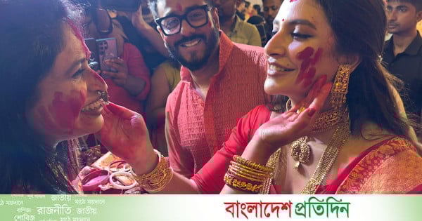 দূর্গাপূজার শেষ দিন, সকাল থেকেই কলকাতার আরবানা মণ্ডপে শুভশ্রী গঙ্গোপাধ্যায় লাল টুকটুকে শাড়ি ও স্বর্ণের গহনায় সাজিয়ে সিঁদুর খেলায় মেতে ওঠেন। প্রণাম শেষে তিনি বলেন, “এটাকে শেষ বলা যাবে না। আগামী বছর মা আবার আসবেন, তাই এটি এক বছরের অপেক্ষার শুরু। মা দুর্গা সবসময় আমাদের সাথেই থাকেন।” শুভশ্রীর সঙ্গে ছিলেন তাঁর স্বামী রাজ চক্রবর্তী, অভিনেতা অরিন্দম শীল, এবং স্ত্রী শুক্লা শীল, যাদেরও সিঁদুরে রঙিন করা হয়।