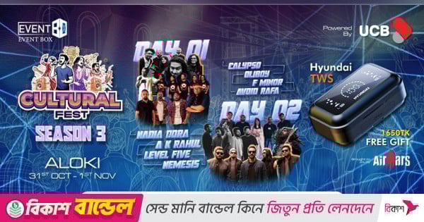 ‘কালচারাল ফেস্ট সিজন ৩’ হবে আনন্দ, উদ্যম ও মিলনের এক দারুণ অভিজ্ঞতা—যেখানে সংগীত, খাবার ও সংস্কৃতি একত্রে সৃষ্টি করবে অবিস্মরণীয় স্মৃতি। প্রতিদিন সকাল ১০টা থেকে শুরু হয়ে রাত ১০টা পর্যন্ত চলবে কালচারাল ফেস্ট, বিকেল ৫টা থেকে চলবে কনসার্ট।