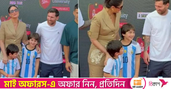 ফুটবল আইকন লিওনেল মেসির ভারত সফর ঘিরে উত্তেজনার পারদ চড়েছে। বহু প্রতীক্ষিত গোট ট্যুর'-এর অংশ হিসেবে আর্জেন্টাইন এই কিংবদন্তি মুম্বাইতে অবস্থান করছেন। আর সেখানেই তাঁর সঙ্গে দেখা করার সুযোগ পেয়ে আপ্লুত হয়েছেন বলিউড অভিনেত্রী কারিনা কাপুর খান এবং তাঁর দুই ছেলে, তৈমুর আলি খান ও জেহ (জাহাঙ্গীর আলি খান)।