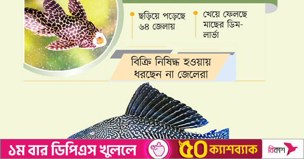 সাকার মাউথ ক্যাটফিশ। স্থানীয়ভাবে চ্যাক বাগা বা রোহিঙ্গা মাছ নামেও পরিচিত। অ্যামাজন অববাহিকার সর্বভুক শিকারি মাছটি এখন দেশের জলাশয়ের বাস্তুতন্ত্রের জন্য হুমকি হয়ে দাঁড়িয়েছে। দীর্ঘ গবেষণায় বিপন্ন ও বিলুপ্তপ্রায় মাছগুলোকে যখন একে একে ফিরিয়ে আনছেন গবেষকরা, তখন সারা দেশের জলাশয়ে হু হু করে বাড়ছে দেশি মাছের শত্রু সাকার। বুড়িগঙ্গা-তুরাগে জাল ফেললে অন্য মাছ না মিললেও উঠছে ১০-১৫ কেজি সাকার মাছ। বিপণন নিষিদ্ধ থাকায় জেলেরা তা আবার নদীতেই ফেলে দিচ্ছেন। বিপজ্জনক মাছটি দ্রুত ছড়িয়ে পড়ায় ঝুঁকিতে পড়েছে পুরো মৎস্য খাত।