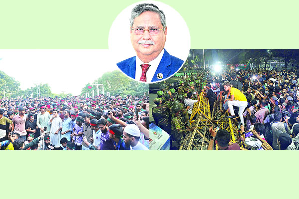 রাষ্ট্রপতি মো. সাহাবুদ্দিনের অপসারণ এবং ছাত্রলীগকে নিষিদ্ধ করাসহ পাঁচ দফা দাবিতে গতকাল দিনভর উত্তাল ছিল রাজধানী। ঢাকা বিশ্ববিদ্যালয়ের টিএসসি, কেন্দ্রীয় শহীদ মিনার চত্বর, শাহবাগের জাতীয় জাদুঘর এবং বঙ্গভবনের সামনে ছাত্র-জনতা জড়ো হয়ে বিক্ষোভ প্রদর্শন করে। একই দাবিতে বিক্ষোভ সমাবেশ হয়েছে দেশের বিভিন্ন স্থানে। এমন উত্তাল পরিস্থিতিতে করণীয় ঠিক করতে বিকালে প্রধান বিচারপতির দপ্তরে প্রধান বিচারপতি ড. সৈয়দ রেফাত আহমেদের সঙ্গে বৈঠক করেছেন আইন উপদেষ্টা ড. আসিফ নজরুল ও তথ্য উপদেষ্টা নাহিদ ইসলাম। রাষ্ট্রপতি মো. সাহাবুদ্দিনের পদত্যাগের দাবি যখন জোরদার হয়েছে, ঠিক সেই মুহূর্তে প্রধান বিচারপতি ড. সৈয়দ রেফাত আহমেদের সঙ্গে বৈঠক করেছেন আইন উপদেষ্টা ড. আসিফ নজরুল ও তথ্য উপদেষ্টা নাহিদ ইসলাম। গতকাল বিকালে প্রধান বিচাপতির দপ্তরে এ রুদ্ধদ্বার বৈঠক অনুষ্ঠিত হয়। সুপ্রিম কোর্টের একাধিক সূত্র বৈঠকের বিষয়টি বাংলাদেশ প্রতিদিনকে নিশ্চিত করেছেন। সূত্র জানান, প্রায় ৪০ মিনিটের মতো প্রধান বিচারপতির সঙ্গে অন্তর্বর্তী সরকারের দুই উপদেষ্টার রুদ্ধদ্বার বৈঠক অনুষ্ঠিত হয়। বৈঠকসূত্র জানান, বৈঠকে রাষ্ট্রপতির পদত্যাগের ইস্যু নিয়ে আলোচনা হয়েছে এবং রাষ্ট্রপতি পদত্যাগ করলে কে পরবর্তী রাষ্ট্রপতি হবেন সে বিষয়েও আলোচনা হয়েছে। দুই উপদেষ্টার সঙ্গে বৈঠক শেষে প্রধান বিচারপতি আইজিপি, র?্যাব ডিজি ও ডিএমপি কমিশনারের সঙ্গে বৈঠক করেন। এর আগে ৮ আগস্ট অন্তর্বর্তী সরকার গঠনের আগে সুপ্রিম কোর্টের আপিল বিভাগের মতামত নেওয়া হয়। আপিল বিভাগের সাত বিচারপতি অন্তর্বর্তী সরকার গঠনের পক্ষে মত দিয়ে স্পেশাল রেফারেন্স পাঠানোর পরই উপদেষ্টাদের শপথ পড়ানো হয়। রাষ্ট্রপতির পদত্যাগের দাবি জোরালো হওয়ার পর থেকে সিনিয়র আইনজীবীরা বলছেন, বিষয়টি নিয়ে আবারও সুপ্রিম কোর্টের মতামত চাইতে পারে অন্তর্বর্তী সরকার। এমন অবস্থায় প্রধান বিচারপতির সঙ্গে রুদ্ধদ্বার বৈঠক করলেন দুই উপদেষ্টা। একই দাবিতে আজ ইনকিলাব মঞ্চের সঙ্গে বৈঠক করবেন উপদেষ্টা নাহিদ ইসলাম, আসিফ মাহমুদ ও আদিলুর রহমান। গত রাতে একদল বিক্ষোভকারীকে বঙ্গভবনের সামনে পুলিশের ব্যারিকেড অতিক্রম করতে দেখা যায়। সেখানে উপস্থিত সেনাবাহিনী ও পুলিশ সদস্যরা তাদের বাধা দেয়। বিক্ষোভকারীদের ছত্রভঙ্গ করতে পুলিশ লাঠিচার্জ করে এবং টিয়ার গ্যাস ছোড়ে। এতে অন্তত পাঁচজন বিক্ষোভকারী আহত হয়েছেন। একপর্যায়ে পুলিশ সদস্যরা বঙ্গভবনের ভিতরে চলে যান এবং বাইরে সেনাসদস্যরা বিক্ষোভকারীদের সঙ্গে কথা বলেন। রাত ১২টায় শেষ খবর পাওয়া পর্যন্ত বিক্ষোভকারীরা সেখানে অবস্থান করছিল। একপর্যায়ে পুলিশের ওপর হামলার ঘটনাও ঘটে। এদিকে বঙ্গভবনে