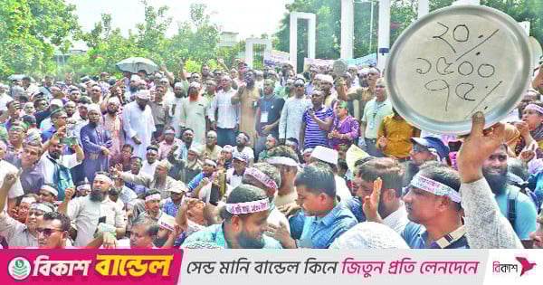 এমপিওভুক্ত শিক্ষক-কর্মচারীরা মূল বেতনের ২০ শতাংশ (সর্বনিম্ন ৩ হাজার টাকা) বাড়িভাড়াসহ তিন দফা দাবিতে গতকাল অষ্টম দিনের মতো আন্দোলন কর্মসূচি পালন করেন। আন্দোলনের পরিপ্রেক্ষিতে গতকাল বেসরকারি শিক্ষাপ্রতিষ্ঠানের এমপিওভুক্ত শিক্ষক-কর্মচারীদের বাড়িভাড়া ৫ শতাংশ (সর্বনিম্ন ২ হাজার টাকা) বৃদ্ধি করে প্রজ্ঞাপন জারি করে অর্থ মন্ত্রণালয়। তবে সরকারের এ সিদ্ধান্ত প্রত্যাখ্যান করে আন্দোলন চালিয়ে যাওয়ার ঘোষণা দিয়েছেন শিক্ষক-কর্মচারীরা।