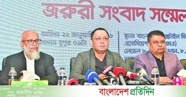 সাত দিনের মধ্যে ১০ থেকে ৩০ কাউন্টের সুতা আমদানিতে বন্ড সুবিধা প্রত্যাহারের সুপারিশ বাস্তবায়ন না হলে ১ ফেব্রুয়ারি থেকে অনির্দিষ্টকালের জন্য সব টেক্সটাইল মিল বন্ধ রাখার ঘোষণা দিয়েছে বাংলাদেশ টেক্সটাইল মিলস অ্যাসোসিয়েশন (বিটিএমএ)। গতকাল রাজধানীর কারওয়ান বাজারে বিটিএমএ কার্যালয়ে আয়োজিত সংবাদ সম্মেলন থেকে এ ঘোষণা দেন সংগঠনের সভাপতি শওকত আজিজ রাসেল। মালিকদের আর্থিক সংকটের চিত্র তুলে ধরে তিনি বলেন, ‘আমাদের পুঁজি অর্ধেকের বেশি কমে গেছে। বর্তমান পরিস্থিতিতে ব্যাংকের ঋণ পরিশোধ করার মতো সক্ষমতা আমাদের নেই। সব সম্পত্তি বিক্রি করলেও দায় পরিশোধ করা সম্ভব হবে না। তাই ১ ফেব্রুয়ারি থেকে ফ্যাক্টরি বন্ধ থাকবে, বাধ্য হয়েই এ সিদ্ধান্ত নিয়েছি।’ তিনি বলেন, ‘সম্প্রতি ক্রিকেট খেলাসংক্রান্ত বিষয়ে সরকারের মধ্যে যে দেশপ্রেমের প্রকাশ আমরা দেখছি, দেশি টেক্সটাইল শিল্প রক্ষায় তার সামান্য প্রতিফলনও দেখতে পাচ্ছি না। বিষয়টি আমাদের কাছে বোধগম্য নয়। এর পেছনে কোনো বৃহৎ ষড়যন্ত্র কাজ করছে কি না, খতিয়ে দেখা জরুরি।’