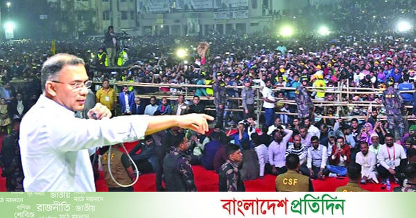 তারেক রহমান বলেন, ‘এক বোন বলে গেছেন তাঁর সঙ্গে কী হয়েছে। আমরা অতীতে যেতে চাই না। বিগত ১৬ বছর কী হয়েছে দেশে। ২০২৪ সালের ৫ আগস্ট দেশে একটি পরিবর্তন হয়েছে। আমি মনে করি, উপস্থিত এ জনসভার মানুষ নয়, সমগ্র দেশের মানুষ একটি পরিবর্তন চায়। সবার সঙ্গে আমিও চাই মানুষের সমস্যার সমাধান, চলাফেরায় নিরাপত্তা, সুশাসন প্রতিষ্ঠা ও শিক্ষার্থীরা যেন মানসম্পন্ন শিক্ষার সুযোগ পায়। লাখ লাখ তরুণ ও যুবসমাজ কর্মহীন। তারা বেকার সমস্যার সমাধান চায়। এই যে কজন মানুষ আপনাদের হয়ে কথা বলেছেন তাদের কথায় বেরিয়ে এসেছে কর্মসংস্থান দরকার। আমরা পরিকল্পনা নিয়েছি দেশের বহু মানুষ বিদেশে যায়। এ মানুষগুলো দক্ষ শ্রমিক হিসেবে যায় না। তাদের বিভিন্ন রকম ট্রেনিং দেব যাতে উচ্চ বেতনের চাকরি পায়। স্বাবলম্বী হয়ে দাঁড়াতে পারে।’
