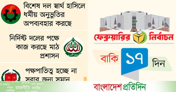 অন্যদিকে নির্বাচনি মাঠে ‘লেভেল প্লেয়িং ফিল্ড’ নষ্ট করা হচ্ছে বলে অভিযোগ করেছে বিএনপি। দলটির দাবি, একটি বিশেষ রাজনৈতিক দল স্বার্থ হাসিলের জন্য ধর্মীয় অনুভূতির অপব্যবহার করছে এবং পোস্টাল ব্যালট প্রক্রিয়ায় অনিয়ম চালাচ্ছে। দলটির কেন্দ্রীয় জাতীয় নির্বাচন পরিচালনা কমিটির মুখপাত্র মাহদী আমিন বলেন, ‘গণমাধ্যমে দেখা গেছে একটি বিশেষ দলের মার্কায় ভোট দিতে পবিত্র কোরআন ছুঁয়ে শপথ করানো হচ্ছে, যা আচরণবিধির সরাসরি লঙ্ঘন। এ ছাড়া ওই দলটি বাড়ি বাড়ি গিয়ে জাতীয় পরিচয়পত্র ও বিকাশ নম্বর সংগ্রহ করছে’, যার পেছনে অসাধু উদ্দেশ্য রয়েছে বলে দাবি করেন তিনি। জামায়াতে ইসলামীর অভিযোগ, নির্বাচনের দায়িত্বে থাকা মাঠ প্রশাসন একটি নির্দিষ্ট দলের পক্ষে কাজ করছে। দলটির সহকারী সেক্রেটারি জেনারেল হামিদুর রহমান আযাদ বলেন, ‘প্রশাসনের নিরপেক্ষতা জরুরি। কিন্তু মাঠপর্যায়ের রিটার্নিং কর্মকর্তারা পক্ষপাতমূলক আচরণ করছেন।’ এনসিপির নির্বাচন পরিচালনা কমিটির চেয়ারম্যান আসিফ মাহমুদ সজীব ভূঁইয়া বলেন, ‘নির্বাচন কমিশন সঠিকভাবে লেভেল প্লেয়িং ফিল্ড নিশ্চিত করতে পারছে না। দলীয়করণ থেকে সরে এসে সঠিকভাবে দায়িত্ব পালনের আহ্বান জানাই। প্রচারের প্রথম দিন থেকেই অন্যতম একটি রাজনৈতিক দল ও দলের চেয়ারম্যান তারেক রহমান আচরণবিধি লঙ্ঘন করছেন।’ পোস্টার ও মাইক ব্যবহার করে নির্বাচনি বিধিনিষেধ লঙ্ঘন করা হচ্ছে বলেও অভিযোগ করেন তিনি। নির্বাচনকেন্দ্রিক রাজনৈতিক দলগুলোর এ ধরনের পাল্টাপাল্টি অবস্থানকে কীভাবে দেখছেন-জানতে চাইলে ঢাকা বিশ্ববিদ্যালয়ের শান্তি ও সংঘর্ষ অধ্যয়ন বিভাগের চেয়ারম্যান ড. সাজ্জাদ সিদ্দিকী বাংলাদেশ প্রতিদিনকে বলেন, ‘এর মাধ্যমে দলগুলো সরকারের ওপর চাপ সৃষ্টি করে নিজের অবস্থান শক্তিশালী করছে। কিন্তু দিনশেষে মানুষ আদর্শিক রাজনীতি করে না, করে পেশিশক্তির রাজনীতি। এটা তৃতীয় বিশ্বের দেশগুলোর অন্যতম বৈশিষ্ট্য।’ তিনি বলেন, ‘এখনই যেভাবে কাদা ছোড়াছুড়ি বা অভিযোগের রাজনীতি শুরু হয়েছে, তাতে ভবিষ্যতে সহিংস ঘটনার আশঙ্কা রয়েছে।’ বিশ্লেষকদের মতে সামনে লেভেল প্লেয়িং ফিল্ড নিয়ে বিতর্ক আরও তীব্র হতে পারে। সুষ্ঠু ও অংশগ্রহণমূলক নির্বাচন নিশ্চিত করতে রাজনৈতিক দলগুলোর পাশাপাশি প্রশাসন ও নির্বাচন কমিশনের ভূমিকা গুরুত্বপূর্ণ বলে মনে করছেন তাঁরা।
