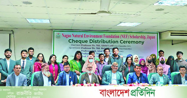 রাজধানীর শেরেবাংলা কৃষি বিশ্ববিদ্যালয়ের (শেকৃবি) পরিবেশ ও প্রাকৃতিক বিজ্ঞানভিত্তিক বিভিন্ন অনুষদে অধ্যয়নরত মোট ২৯ জন মেধাবী শিক্ষার্থী আন্তর্জাতিক খ্যাতিসম্পন্ন নাগাও ন্যাচারাল এনভাইরনমেন্ট ফাউন্ডেশন (এনইএফ), জাপান কর্তৃক প্রদত্ত মর্যাদাপূর্ণ বৃত্তির জন্য নির্বাচিত হয়েছেন। ২৯ জানুয়ারি প্রশাসনিক ভবনের সেমিনার রুমে আয়োজিত অনুষ্ঠানে শিক্ষার্থীদের হাতে বৃত্তির চেক তুলে দেন বিশ্ববিদ্যালয়ের উপাচার্য অধ্যাপক ড. আবদুল লতিফ। বৃত্তির আওতাধীন প্রত্যেক শিক্ষার্থী বাৎসরিক ৩৮ হাজার টাকা হারে তিন বছর পর্যন্ত এ আর্থিক সুবিধা পাবেন। অনুষ্ঠানে বিশেষ অতিথি হিসেবে উপস্থিত ছিলেন বিশ্ববিদ্যালয়ের উপ-উপাচার্য অধ্যাপক ড. মো. বেলাল হোসেন, কোষাধ্যক্ষ অধ্যাপক ড. আবুল বাশার, বিশ্ববিদ্যালয়ের প্রক্টর অধ্যাপক ড. আরফান আলী, ছাত্র পরামর্শ ও নির্দেশনা বিভাগের পরিচালক অধ্যাপক ড. আশাবুল হক। অনুষ্ঠানে সভাপতিত্ব করেন উদ্যানতত্ত্ব বিভাগের শিক্ষক অধ্যাপক ড. জাহিদুল ইসলাম। সভাপতির বক্তব্যে তিনি জানান, শেকৃবিতে ২০১৬ সাল থেকে এনইএফ বৃত্তি কার্যক্রম শুরু হওয়ার পর মোট ৯২ জন শিক্ষার্থী এ বৃত্তি অর্জন করেছেন। শেকৃবি ছাড়াও গাজীপুর কৃষি বিশ্ববিদ্যালয় (গাকৃবি), বাংলাদেশ কৃষি বিশ্ববিদ্যালয় (বাকৃবি), ঢাকা বিশ্ববিদ্যালয় (ঢাবি) ও জাহাঙ্গীরনগর বিশ্ববিদ্যালয়ের (জাবি) শিক্ষার্থীদের এ বৃত্তি প্রদান করা হয়ে থাকে। শিক্ষার্থীদের একাডেমিক ফলাফল ও আর্থিক অবস্থার ভিত্তিতে এ বৃত্তি নির্বাচন করা হয়। বৃত্তিপ্রাপ্ত শিক্ষার্থীদের অভিনন্দন জানিয়ে উপাচার্য ড. লতিফ বলেন, ‘যেকোনো বৃত্তি সম্মানের বিষয়। পুরস্কার মানুষকে সম্মানিত করে। এনইএফ স্কলারশিপ অত্যন্ত প্রেস্টিজিয়াস ও আন্তর্জাতিক মানের বৃত্তি।’ বৃত্তির মাধ্যমে শিক্ষার্থীরা জ্ঞান অর্জনে আরও বেশি মনোনিবেশ করবে এবং নিজেদের বিশ্ববিদ্যালয়ের পাশাপাশি দেশের নাম উজ্জ্বল করবেন এমনটিই প্রত্যাশা।