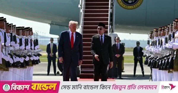ট্রাম্পের বিমানকে মালয়েশিয়ার আকাশে দুইটি এফ–১৮ যুদ্ধবিমান এসকর্ট করে—যা সাধারণত মধ্যপ্রাচ্যের সফরে রাষ্ট্রীয় অতিথিদের দেওয়া হয়।