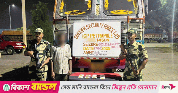 বিএসএফ মঙ্গলবার এক বিবৃতিতে জানায়, গতকাল সোমবার বিকেলে নির্দিষ্ট গোয়েন্দা তথ্যের ভিত্তিতে বিএসএফের জওয়ানরা বাংলাদেশের বেনাপোল থেকে ভারতে প্রবেশকারী একটি খালি ট্রাক আটক করে। তল্লাশির সময় গাড়ি থেকে দুটি লুকানো সবুজ প্যাকেট উদ্ধার করা হয়, যার মধ্যে বিভিন্ন আকৃতির আটটি স্বর্ণ ছিল।