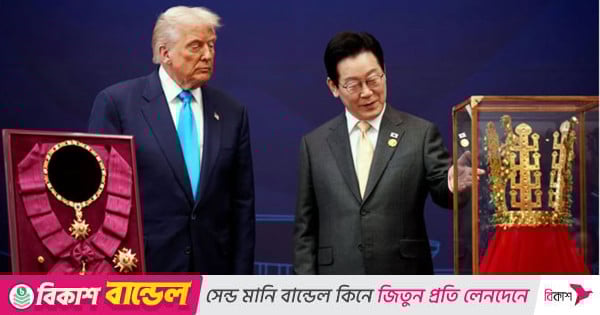 যুক্তরাষ্ট্রের প্রেসিডেন্ট ডোনাল্ড ট্রাম্পকে প্রাচীন সোনার মুকুট উপহার দিয়েছেন দক্ষিণ কোরিয়ার প্রেসিডেন্ট লি জে মিয়ং।